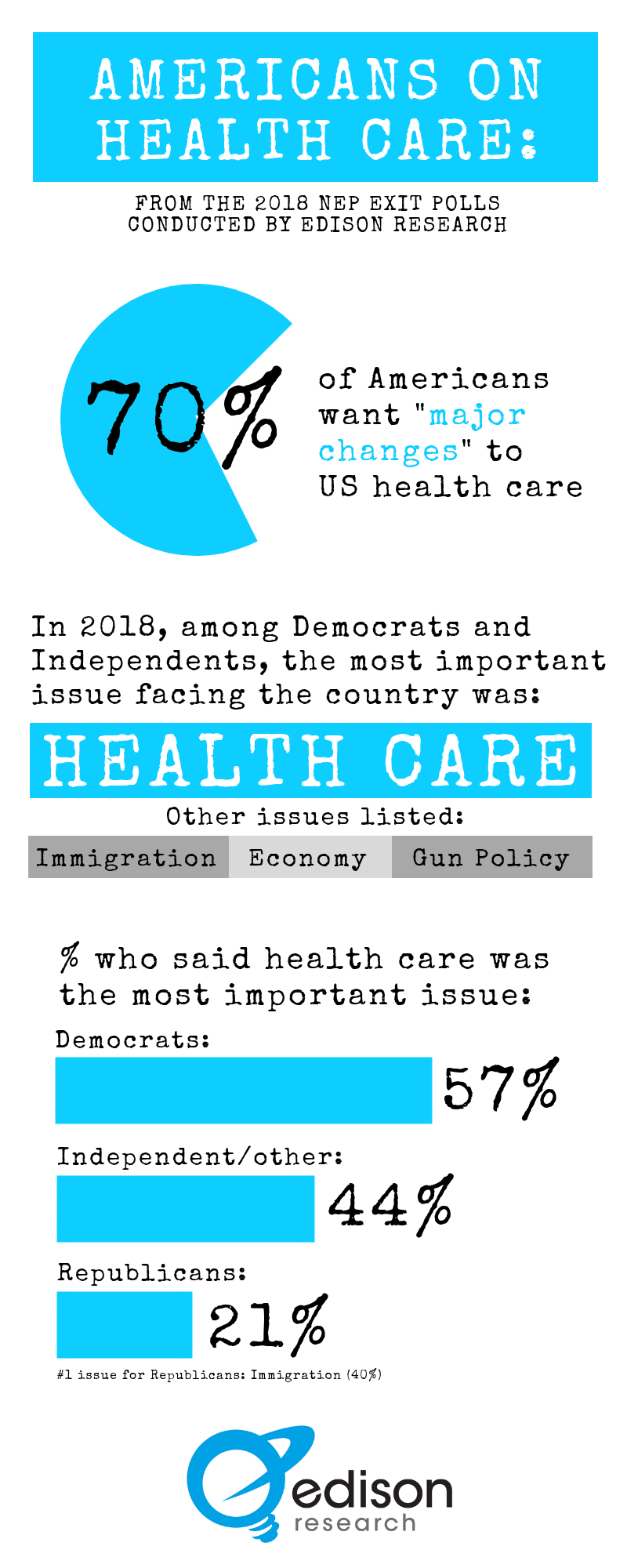 The first Democratic Presidential debates start tomorrow. With more than 20 candidates vying for office, each candidate is working to break through the pack, win over voters, and make it to the second debate. As candidates hone their messages, they would be wise to consider the issues that are most important to Americans. The 2018 NEP exit poll conducted by Edison Research points to at least one clear topic to focus on: health care.