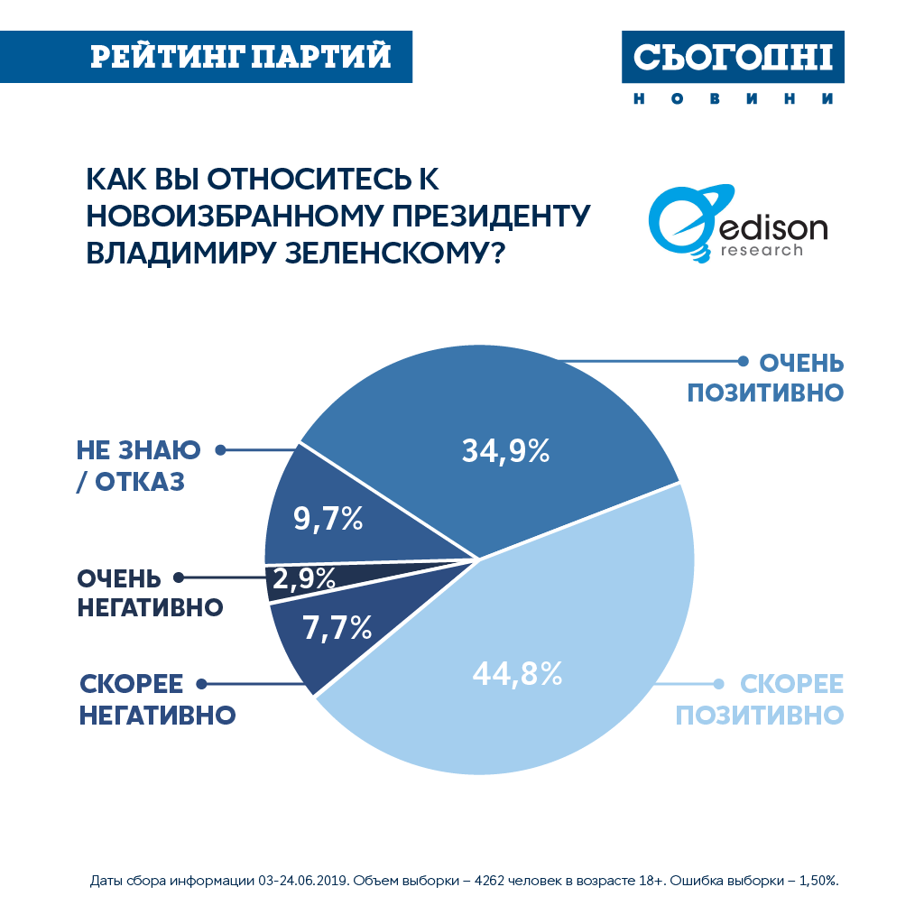79.7% of Ukrainians have a positive opinion of the newly elected President of Ukraine, Vladimir Zelensky.